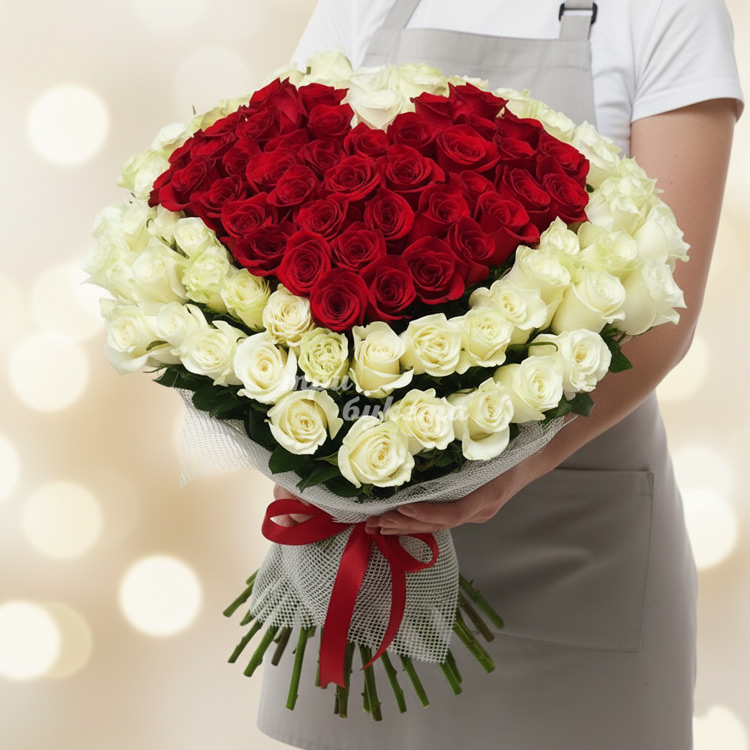 - Красные и белые розы (Эквадор), 101 шт.