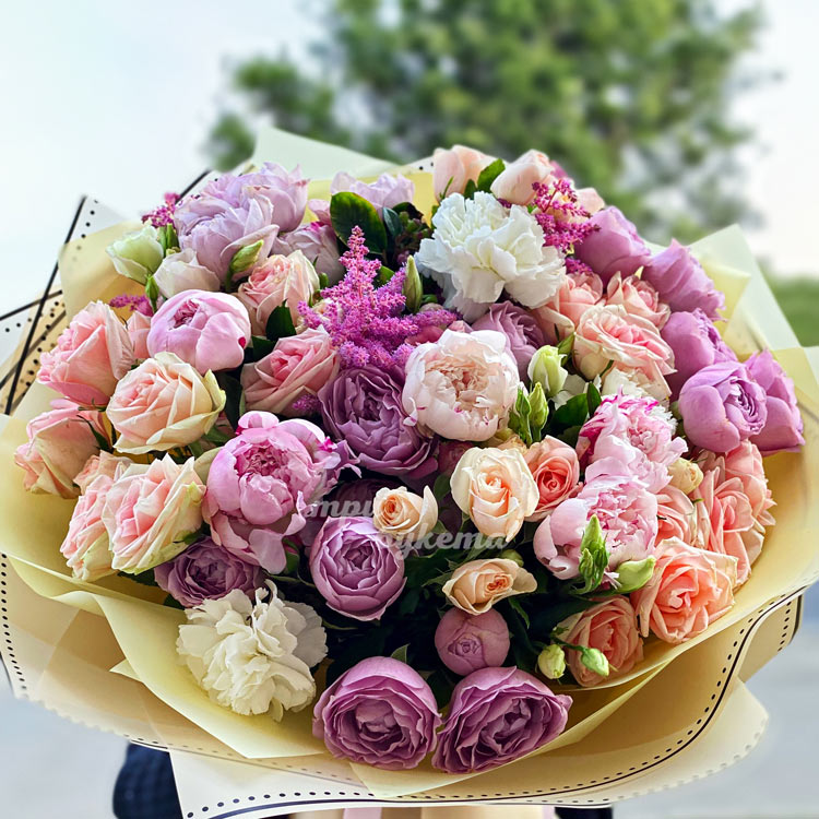 - Сиреневые пионовидные кустовые розы, 5 шт.