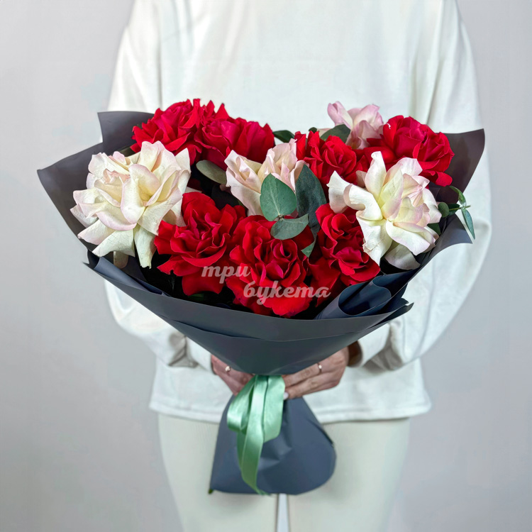 Букет из 11 красных и розовых французских роз