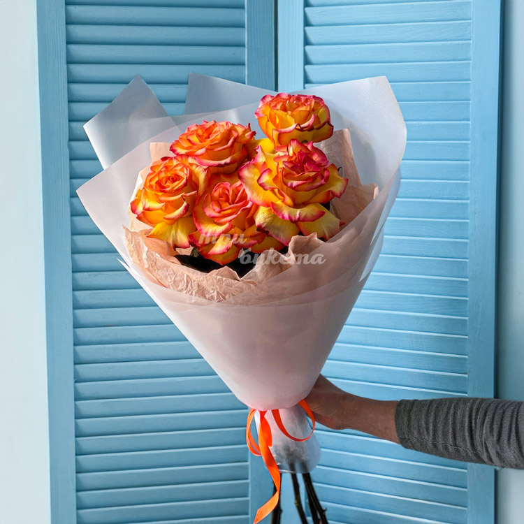 - Оранжевые эквадорские розы, 5 шт.