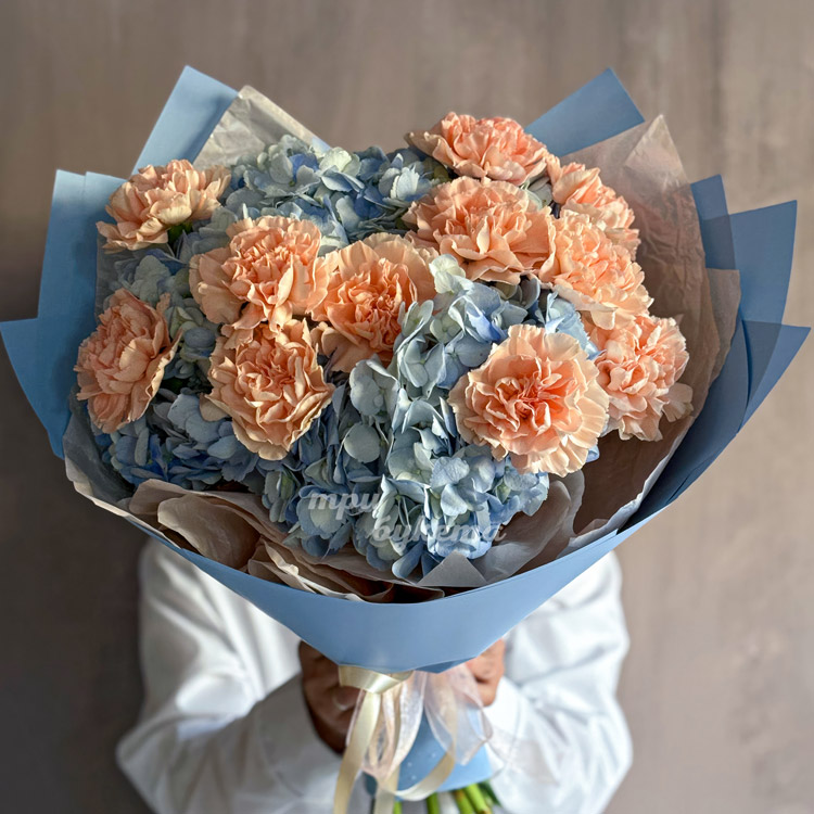 Букет из гортензий и персиковых диантусов
