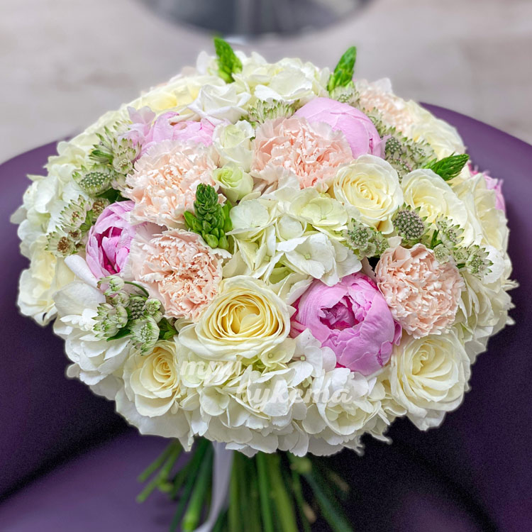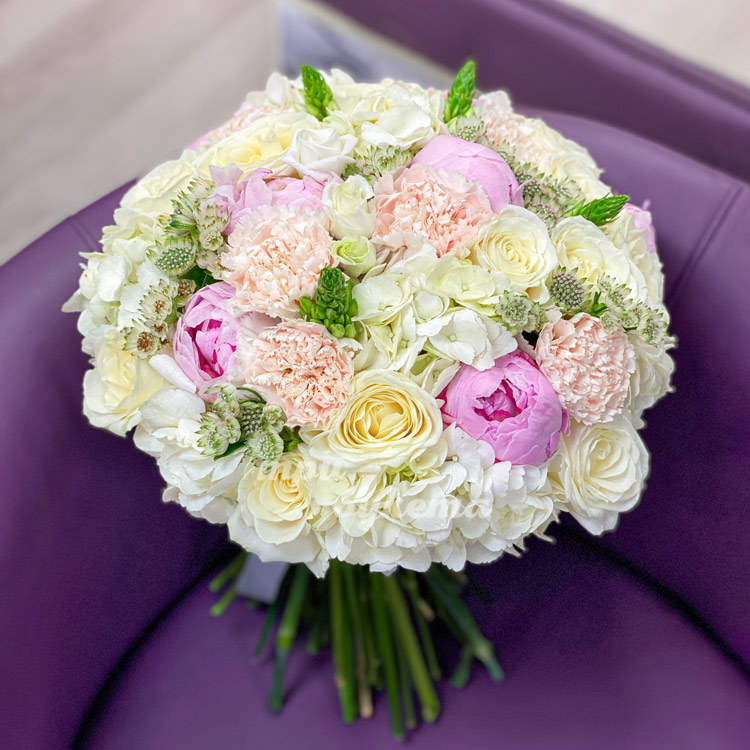 Букет из пионов и белой гортензии