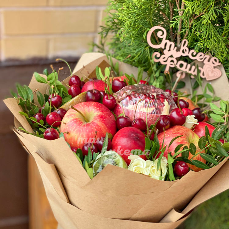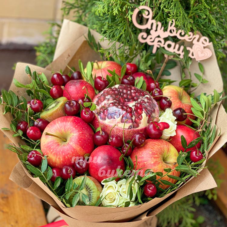 Букет из винограда, вишни и роз