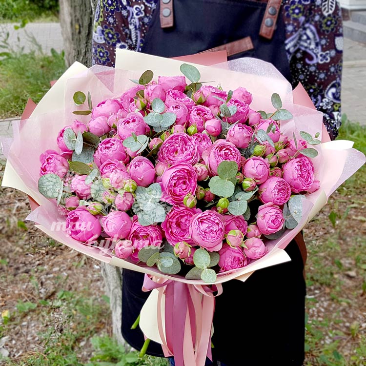 Букет розовых пионовидных роз