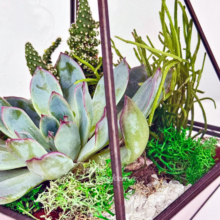 Флорариум с кактусом, мхом и эхеверией
