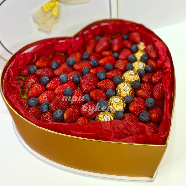 Коробка-сердце из 1 кг клубники