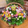 Корзина французских роз, хризантем и эустом