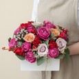 Корзина кустовых роз и ирисов