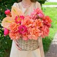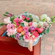 Корзина розовых гербер и лимониума