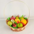 Корзина с белыми эустомами и фруктами