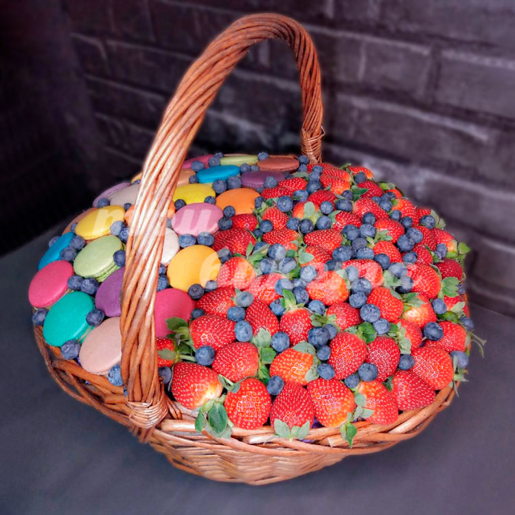 Корзина с макарунами и клубникой