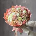 Нежно-розовый букет пионовидных и кустовых роз