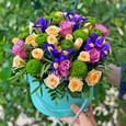 Пионы, розы и эустомы в коробке